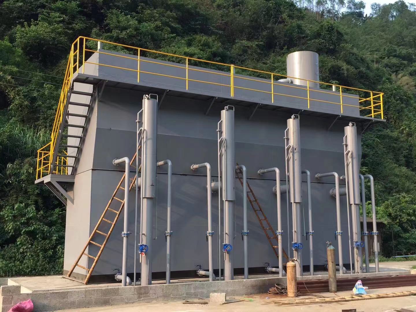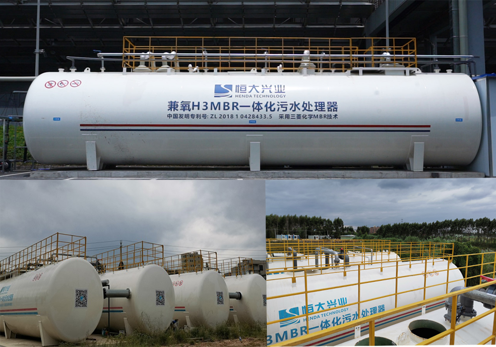 (二)由我司自主研發(fā)的智能兼氧H3MBR一體化污水處理器(中國發(fā)明專利號:ZL2018 1 0428433.5),采用三菱化學(xué)MBR膜技術(shù),結(jié)合間歇曝氣和間歇進水完成脫氮除磷,去除有機物,并通過三菱化學(xué)MBR膜組件進行泥水分離,產(chǎn)水穩(wěn)定達到一級A排放標(biāo)準(zhǔn)。主要應(yīng)用于市政污水、產(chǎn)業(yè)園區(qū)污水、方艙醫(yī)院、城鎮(zhèn)新農(nóng)村生活污水等諸多場景生活污水的處理與回用。