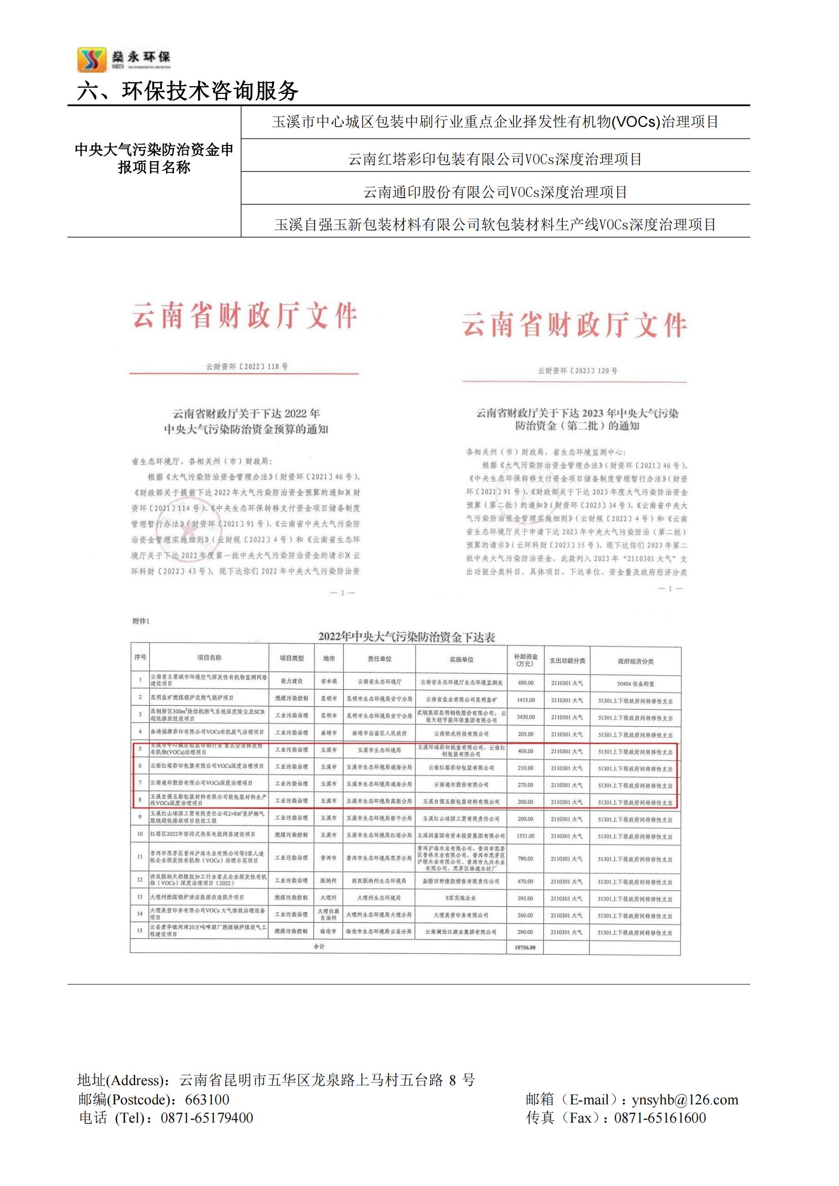 截止2023年10月,公司幫助云南省多個行業(yè)企業(yè)成功申報的中央大氣污染防治資金已入庫項目共計20余個,申報項目已獲批總資金近一億余元。公司承接的云南省內中央大氣污染防治資金申報項目申報成功率高,成效顯著,服務細致高效,在云南省中央大氣污染防治資金申報領域具有豐富的經驗。